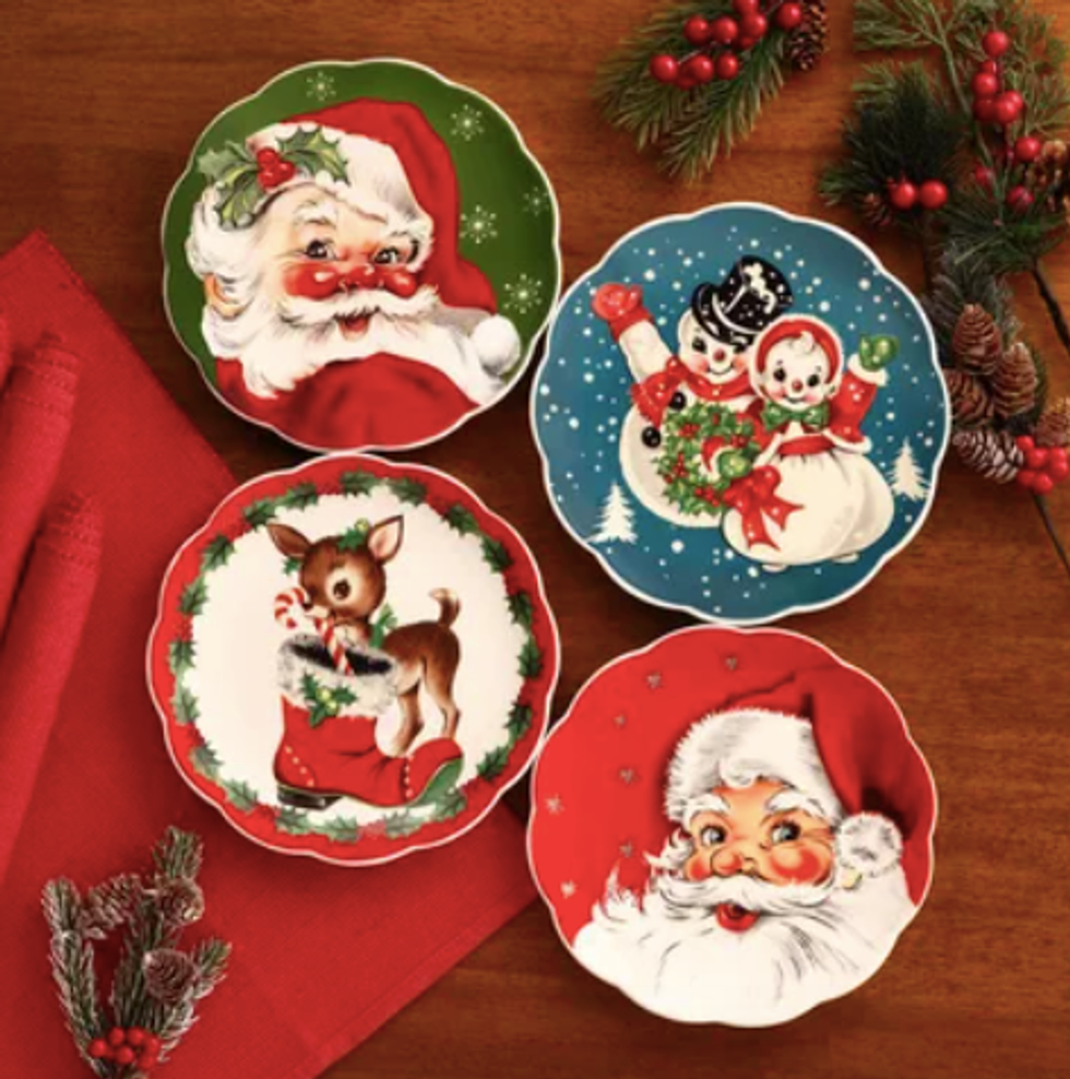 Mr. Christmas Vintage Scalloped Plates, Set 4