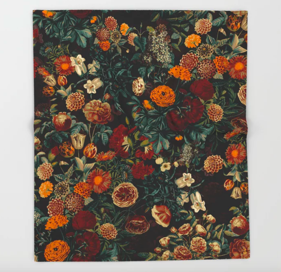 A soft blanket feautring gorgeous imagery is quintessential for a night at home. Try this Society 6 throw featuring gorgeous fall florals on one side and sherpa fleece on the other to stay warm and have something lovely to look at while you do so.