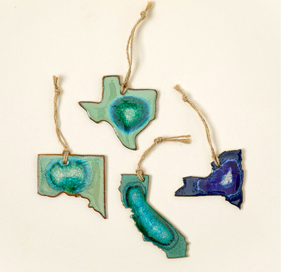 Going to school out of state? It’s safe to expect at least a tinge of homesickness from time to time. Show off your home state pride and feel grounded with one of these geode ornaments that will look beautiful hanging in a window.
