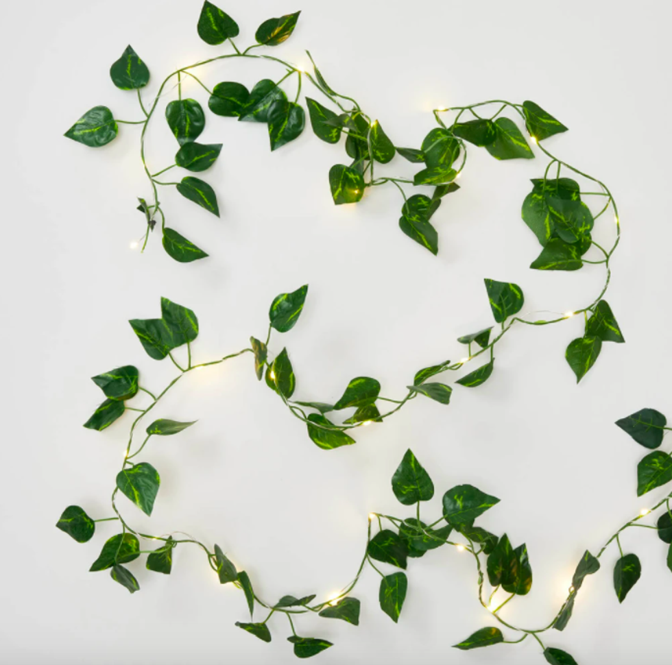 String these adorable fairy lights along the top of your bed or window to add a touch of no-maintenance greenery and warm up the space with some ambient lighting. You can even weave or tack them up around your mirror for a vanity to add instant glamour.