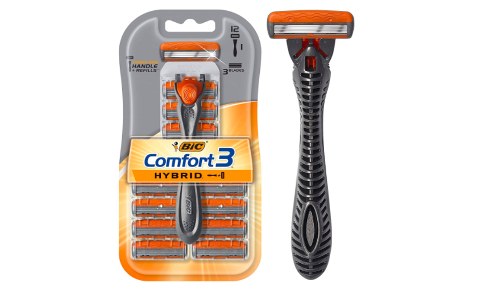 BIC Comfort 3 Hybrid Men's 3-Blade Disposable Razor, 1 Handle and 12 Cartridges