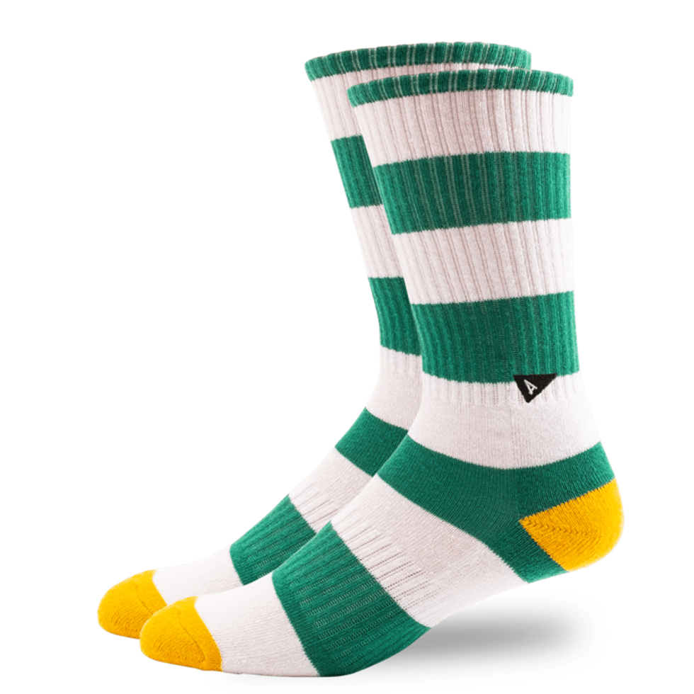 The Kennedy Lux Athletic socks were inspired by a photo of U.S. President John F. Kennedy on a yacht. The footwear from Pennsylvania-based coat manufacturer American Trench offers a sock-drawer staple that can be worn with wingtips in the office or sneakers on street. The stripes up top, as well as toe and heel, add a pop of color to the classic crew look.
