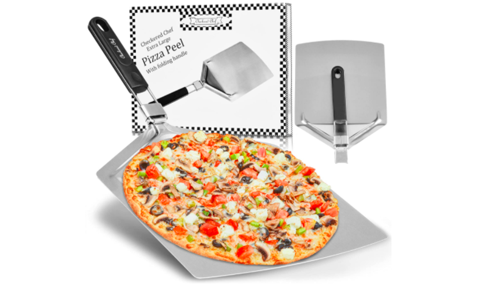 Checkered Chef Pizza Paddle - Large Stainless Steel Peel w/Folding Handle - 13 Inch x 15 Inch