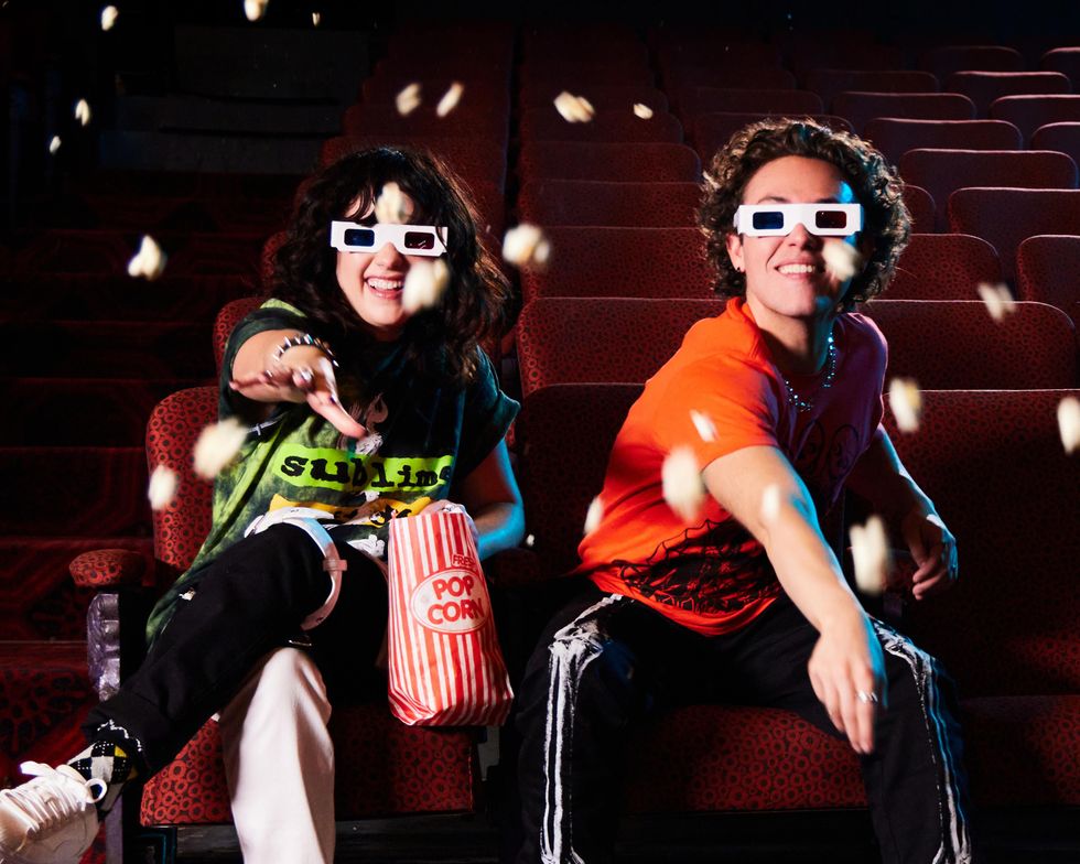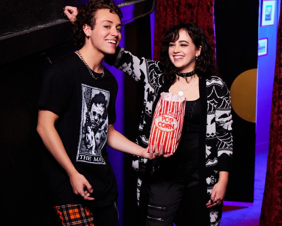 To showcase this, the iconic store has released their Halloween Forever campaign starring Cobra Kai's Mary Mouser (fun fact: a former Hot Topic employee!) and Shameless actor Ethan Cutkosky in which the actors model some of the season's best wearables in a fun but perfectly eerie shoot inside an empty movie theater – the ideal place for a haunting good time.