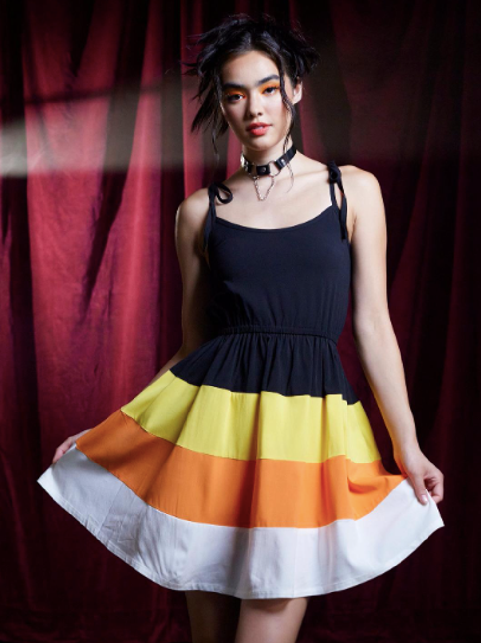 Big plans to pass out candy this year during trick or treat? Try looking like the candy yourself in this sweet-as-a-toothache candy corn dress that's selling fast.