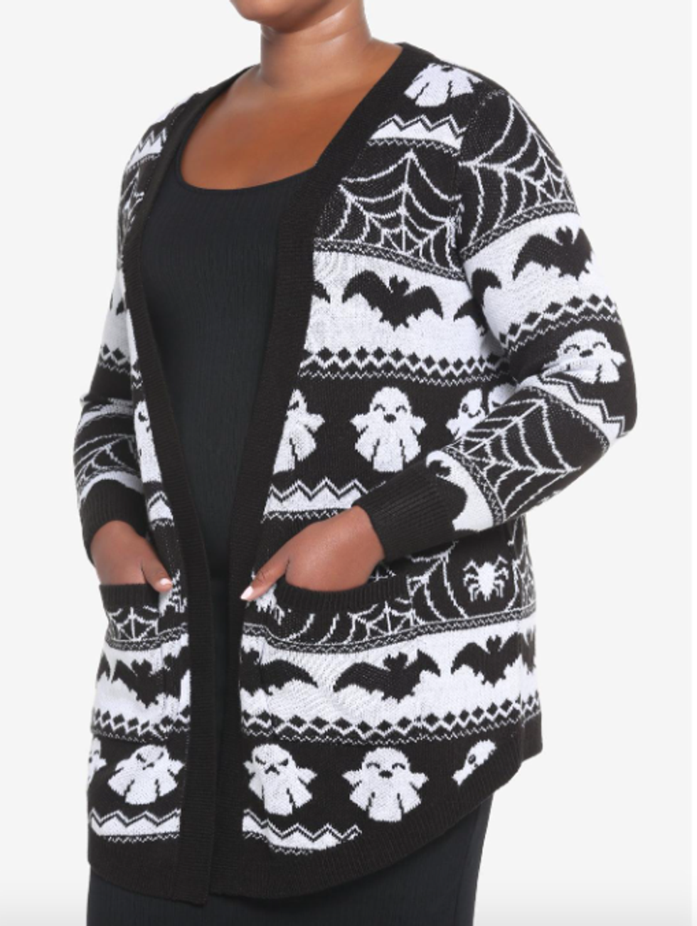 Reminiscent of the cardigans your teacher might have worn back in elementary school, this updated, spookier version features a gorgeous Fair Isle print style with ghosts, spiders, and bats – oh my! But seriously, it's so cute.