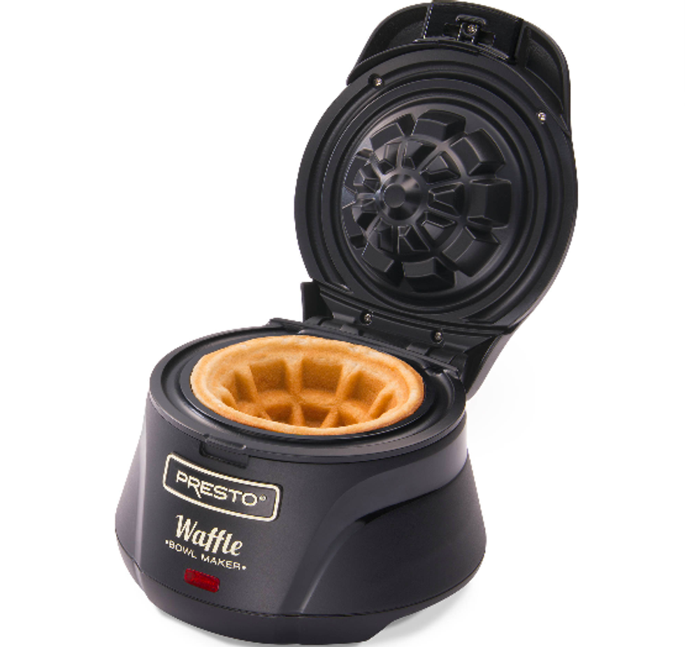 Once you've mastered the art of the breakfast waffle, it's time to take those bad boys all the way past dinnertime to create a mouth-watering treat that's easily filled with ice cream, chocolate syrup, caramel, or any kaleidoscope of toppings you can dream up for the perfect waffle bowl dessert sundae. You don't have to wait though–you could also use these at breakfast time as a convenient bowl for a protein-packed Greek yogurt and honey mixture, or perhaps a bit of roughly chopped mixed fruit salad. The options are endless when a waffle is your bowl.