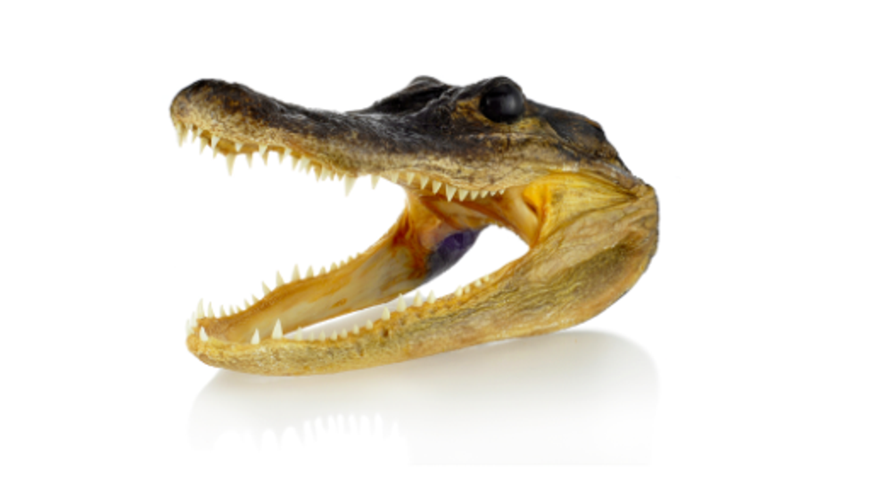 This particular breed, the American Alligator or Alligator mississippiensis, is considered a living fossil and is the largest reptile in North America which makes it a fantastic point of conversation for visitors curious about that wide, toothy grin peeking out at them from a dark bookshelf or curio.