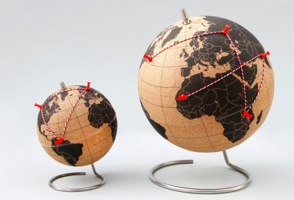 Perfect for the traveler who wishes not only to showcase their collected ephemera but the locales from which they were snagged, a cork globe provides the perfect opportunity to stick a pin in each city you visit.