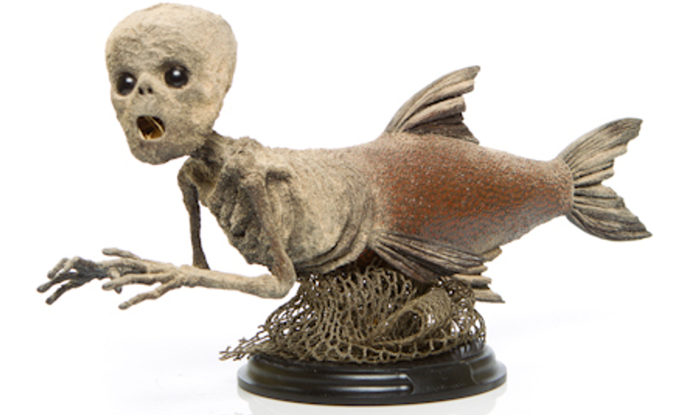 We have one more entry from Evolution, and this one’s a doozy: The Feejee Mermaid. Serious collectors will love this specimen’s horrifyingly unique presence, named by circus tycoon PT Barnum but likely created in Japan, as it combines half monkey and half fish parts to create a spooky hybrid creature that will delightfully haunt your guests with its terrifying expression and deep-sea ghastliness.