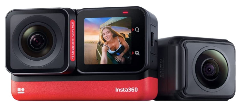 You get two cameras for the price of one with the waterproof ONE RS Twin Edition that boasts plenty of benefits such as interchangeable lenses, active high dynamic range, super-smooth image stabilization, and the same invisible selfie stick capabilities as the smaller camera above.