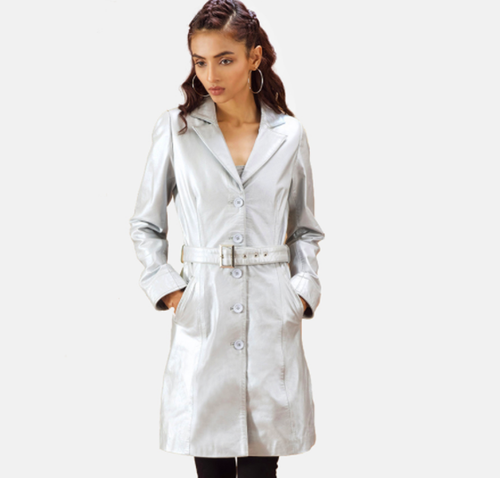 The feel and weight of the Moonlight Silver Leather Trench Coat are impeccable. For me, this feels like the perfect layer for Spring and fall weather, or a normal winter day without a ton of snow accumulation. The lining adds quite a bit of warmth, so layering over thinner pieces could make it work in much lower temperatures as well, and the futuristic silver leather would look amazing against a snowy backdrop.