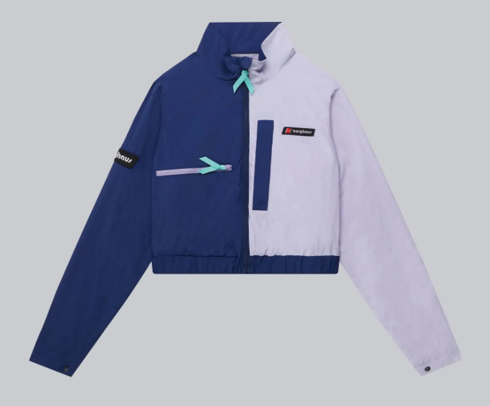 This brings us to our first pick for lightweight jackets to prepare you for spring: the Cropped Co-Ord Wind Waterproof jacket in blue and purple color-blocking. It's a wildly stylish take on the popular 1990s multicolor windbreakers that reigned supreme for many years, but with a modern shape that allows easy movement for outdoor workouts or hiking.