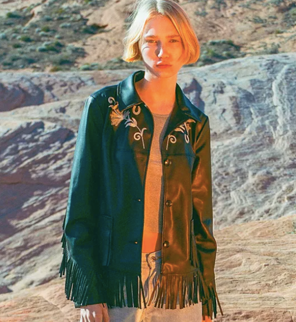 The biker jacket is an ultimate icon of effortless style, but adding fringe gives it a free-spirited, retro feel that simple zippers and belts can't quite convey. This particular fringe jacket conveys a hippie sensibility with harder-edged grit, set off beautifully by the floral embroidery that makes this primed for spring outfits.