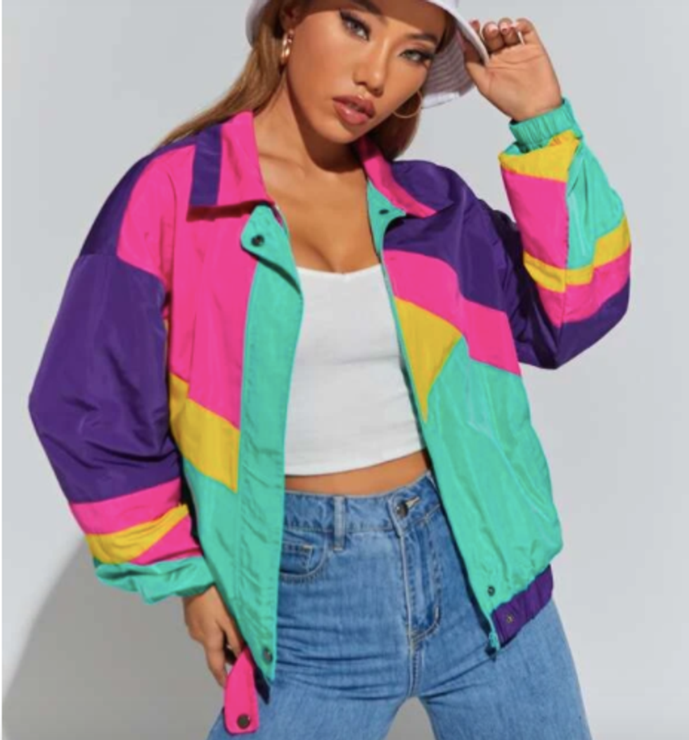 SHEIN Color Block Drop Shoulder Zipper Jacket