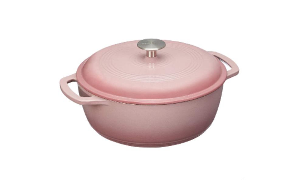 Amazon Basics Enameled Cast Iron Covered Dutch Oven, 4.3-Quart, Light Pink