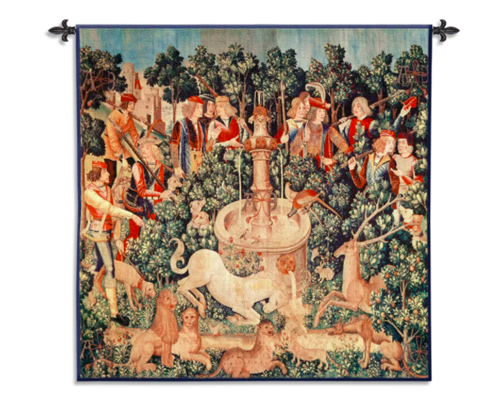 You might recognize this as a reimagined version of one of the grand tapestries on display at The Met Cloisters museum in New York City, but now you can have a similarly spectacular piece in your own home!