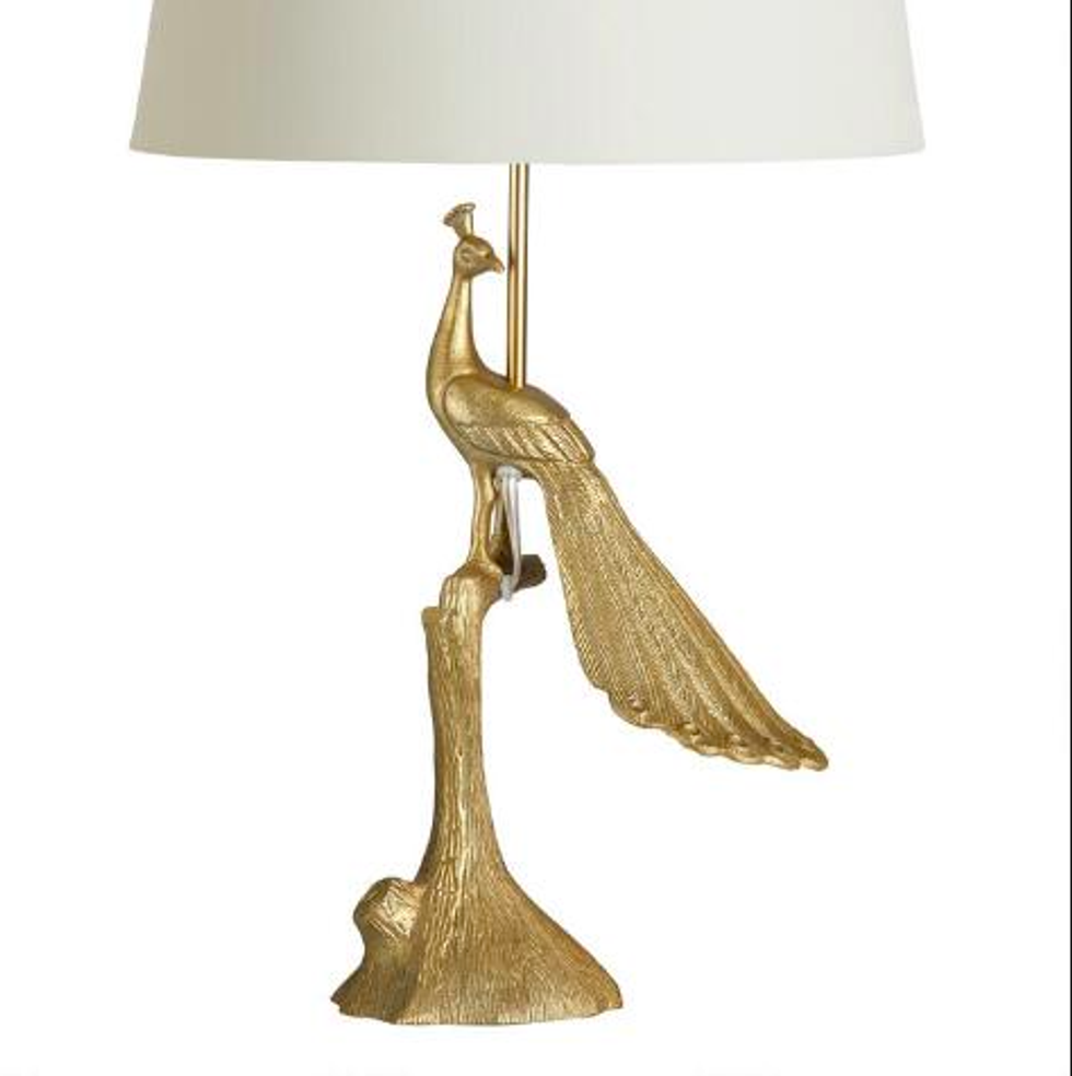 One of maximalism’s greatest strengths is how it can convey the bold confidence ofits curator, so go fully on-the-nose with a brass peacock lamp like this one from World Market.