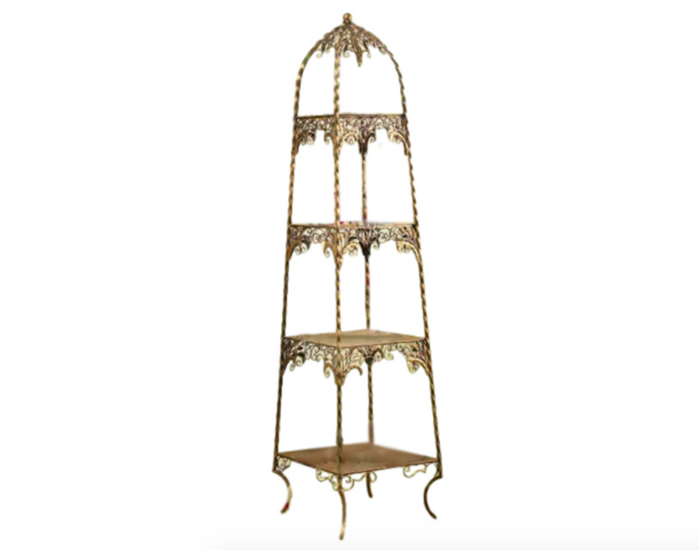 Lavish Ornate Gold Iron Square Etagere 4 Shelf Freestanding Bookshelf