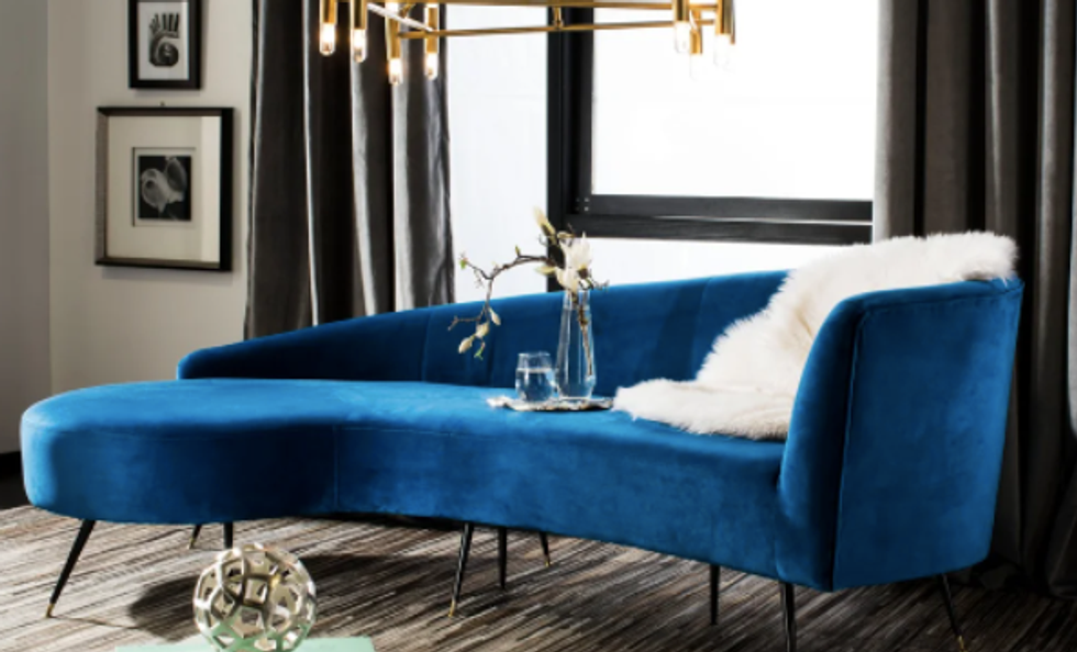 Clean lines and luxurious detailing are the way to go with furniture when you’re planning to add plenty of fun decor pieces to go with it. This couch gives old-school glamour and room to stretch out, plus it has the plush feeling of velvet we simply cannot resist.