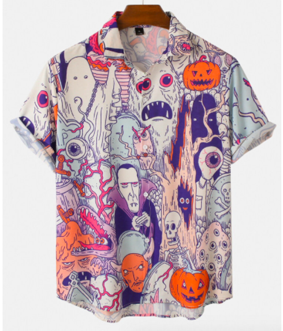 Mens Halloween Ghost Print Loose Light Casual Short Sleeve Shirts