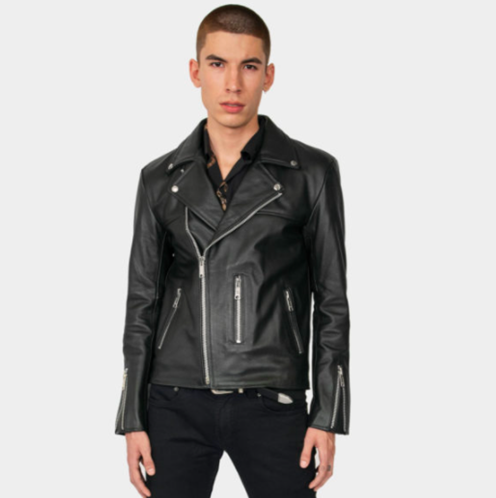 A leather biker jacket never goes out of style. Never. Invest in a cool, red-lined one with this Straight To Hell beauty.