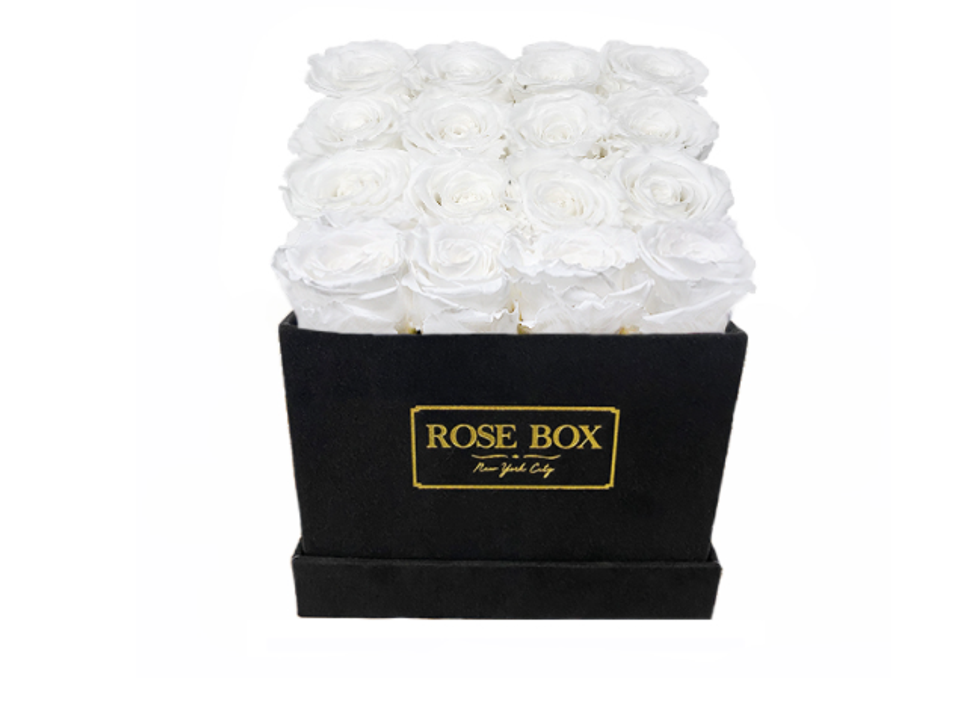 Rosebox Medium Square Black Box with Pure White Roses