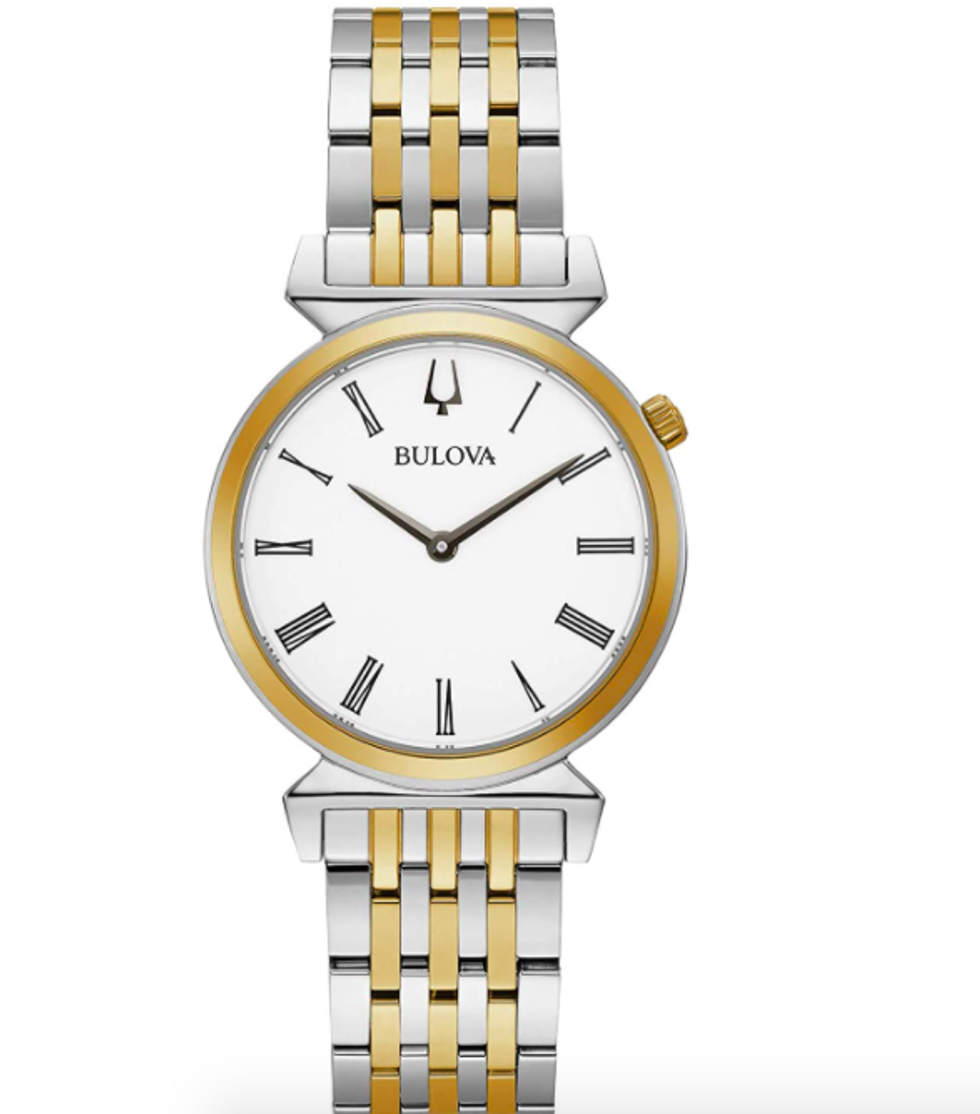This classic watch for women is two-toned, gorgeous, and crafted with the Bulova quality wearers have loved since the company’s inception in 1875.