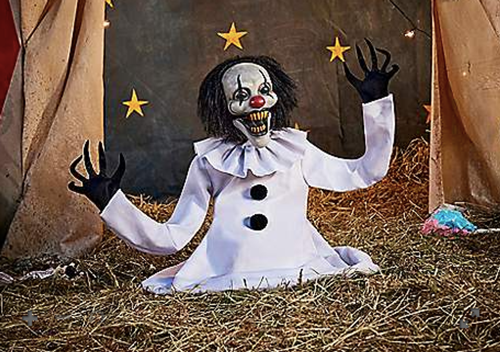 Monty's carnival brethren is Lucky Bottoms, the most terrifying clown to ever stand on no legs. He creeps up from below where he's seemingly trapped between the land of the living and dead, waiting for someone to stumble across his old bones so he can give them the fright of a lifetime! Add him to your circus-themed setup this year to make sure you scar the neighborhood children for life.