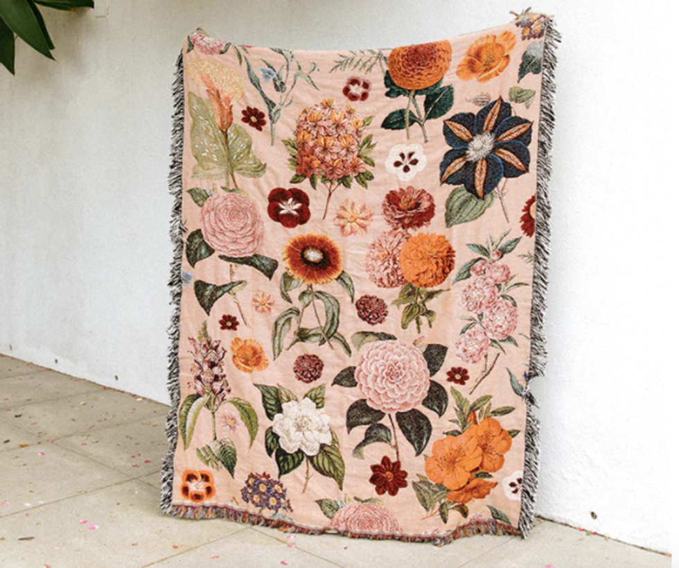 It's warming up but that doesn't mean it's not nice to snuggle up with a cushy throw in the evening. Try this floral stunner from Valley Cruise Press featuring a colorful array of fauna meant that are so pretty you can almost smell the fields from which they came.