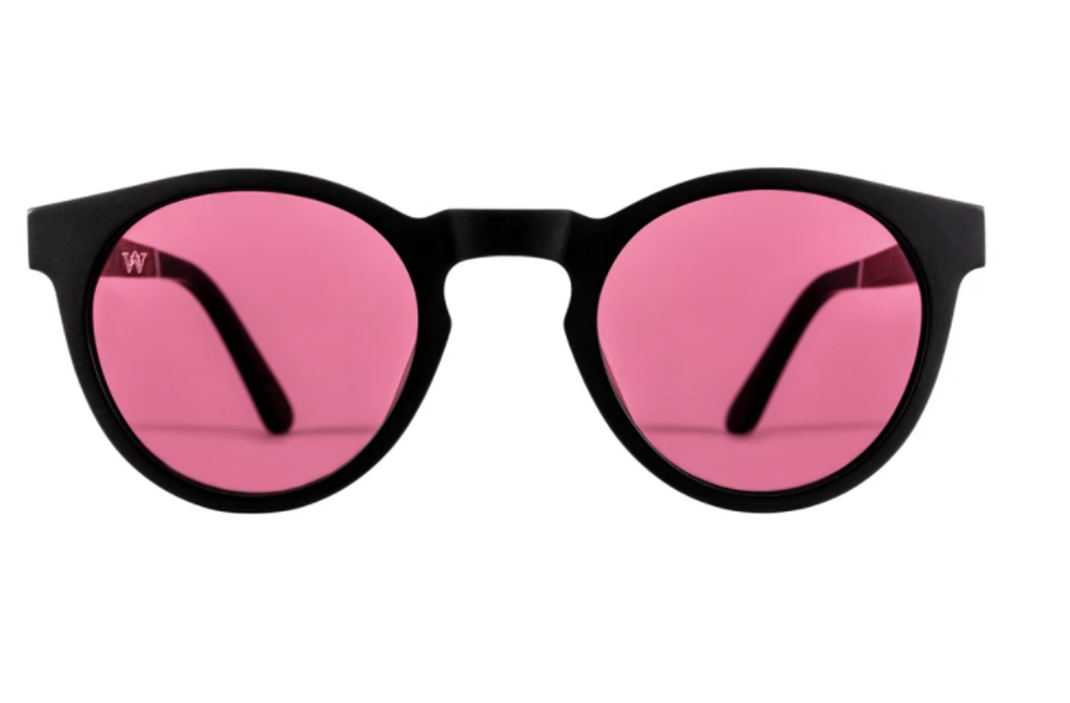The pink and black color scheme caught our eye; the round shape kept our attention. Check out Woodzee's progressive recycling program to see what your purchase helps fund.