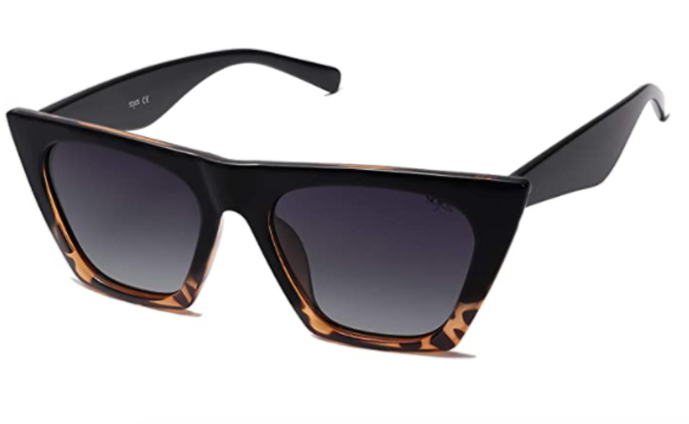 For those who prefer an angular approach, try these fun and cheap shades from Amazon that combine the sleek look of a black frame with a pop of tortoise to add interest.
