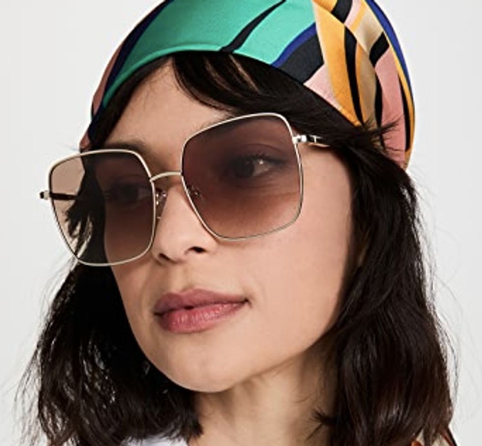 The Cherished Sunglasses by Le Specs have a double hit of nostalgia by bringing to mind the carefree disco aesthetics of the 1970s with a touch of J. Lo in the early oughts to really drive home a chic mood. We love how they've been styled with a headscarf here.