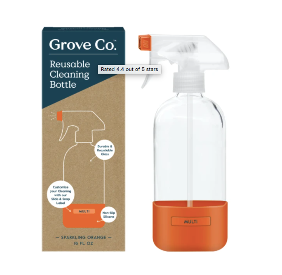 Use an earth-safe concentrate purchased in bulk, or skip the store-bought cleaning fluids altogether and whip up a simple mixture of vinegar and water to use as a non-toxic, eco-friendly alternative, sprayed directly from your handy, reusable glass bottle! The orange base comes with a slide and snap label, allowing you to name the bottle's contents for organized cleaning. Our favorite simple cleaning solution recipe is: