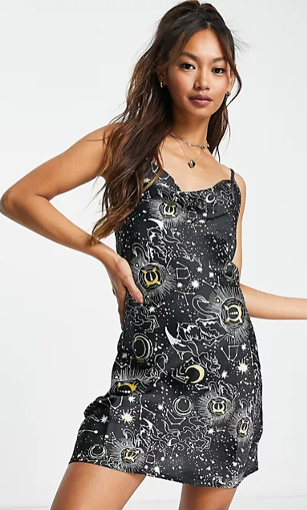 This mini satin slip dress from Wednesday's Girl is stunning in celestial print, with the satiny fabric and flouncy shape that has reentered the fashion lexicon as a mainstay to be worn throughout the year. Pair it with strappy sandals and layered gold accessories for the perfect summer fling look, and simply add tights and knee-high boots once fall arrives to make cool-weather friendly. When you buy now during the ASOS Easter sale, you'll pay less than $20.