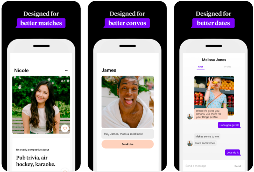 Bumble has grown into an all-around networking app, but its primary use for most is still as one for dating. It claims to “change the antiquated rules of dating,” and does so by requiring the woman to make contact first in heterosexual matches, thus breaking the standard gender rule of “the male is the aggressor” and theoretically equalizing the playing field from the jump. Through encouraging kindness and respect between users and being committed to banning anyone who goes against those values, Bumble is able to foster an environment of meaningful connection rather than quick hookups and casual flings.