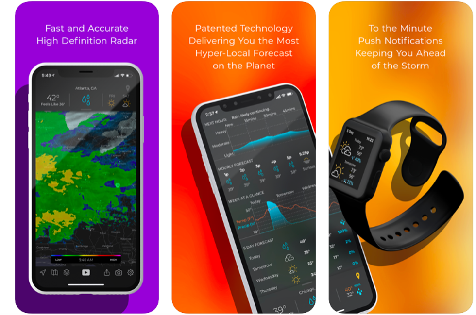 Like the Weather Channel app, MyRadar is free to download with the ability to make in-app purchases and upgrades once you’ve done so. Upgrading to their premium version to get the Hurricane Tracker, the Professional Radar Pack, the Apple Watch app, plus an ad-free experience and more.