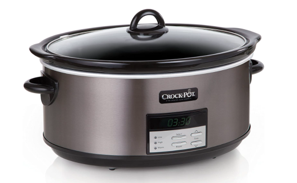 “Love this crockpot,” one user reports. “Great to be able to set the cook time. No need to watch the clock. Great size for making meals and especially soups.”