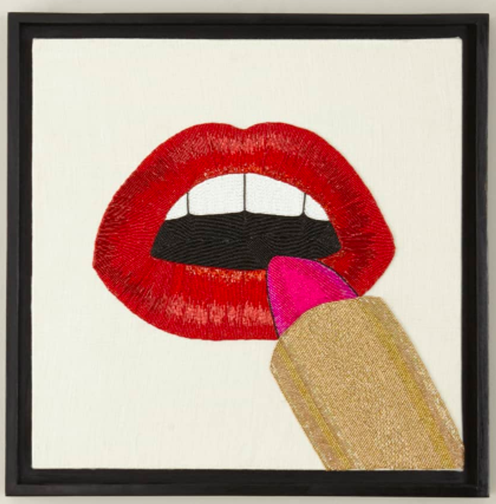 Sure, it goes with the Valentine’s theme of lips, roses, pink, red, et al, but this beaded work of art’s year-round appeal cannot be denied.