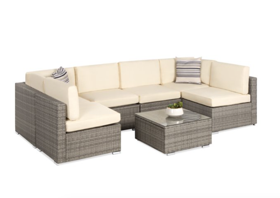 If you plan to host parties this summer, make sure your deck or patio is ready with this outdoor set designed to keep the conversation flowing. Built from all-weather wicker with extra plush cushions, it'll soon become your favorite place to lounge beneath the summer sky.