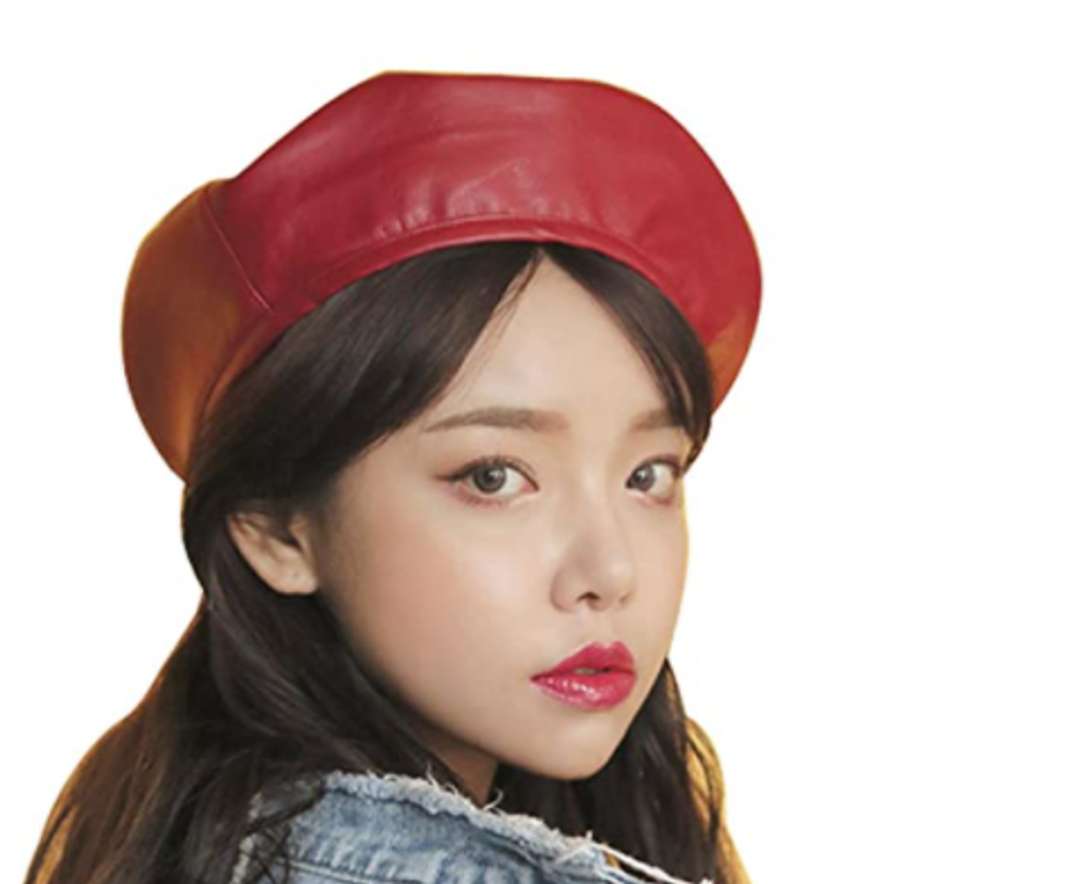 On the other hand, if you're ready for something a bit more tough-looking, try this top-selling faux leather beret. It comes in red and black, fits well, and lends just the right amount of edge to any outfit.