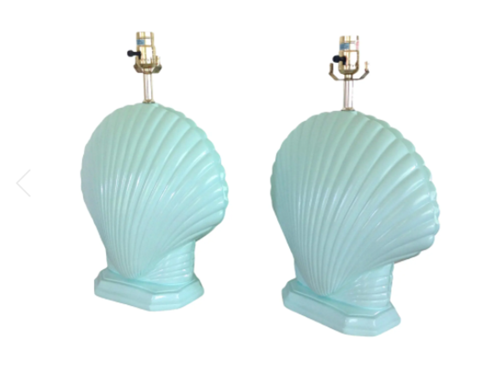 Indulge yourself a bit of the throwback look or complete a room with these beautiful seashell lamps. They're the perfect way to add a cool dose of color to any decor scheme, and they lend an eclecticism missing from the overly modern minimalist look that dominated trends for years. Ideal for a coastal home, the lamps have been refinished using Benjamin Moore paint in Ocean Spray, and the original wiring is still intact and working beautifully!