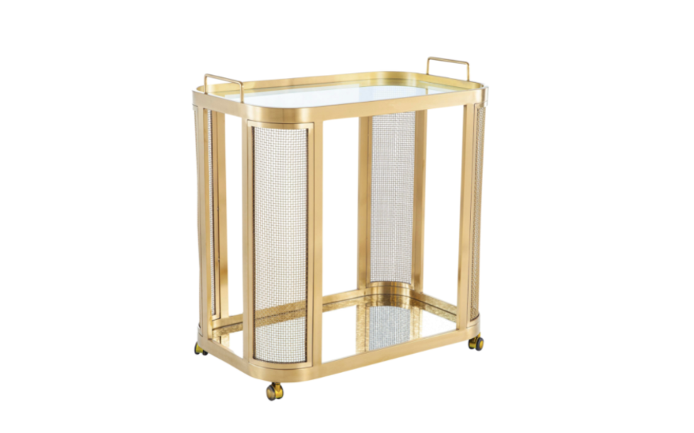 If you enjoy entertaining but live in a small space, a bar cart is a classy place to store your booze that won't take up much room at all! Try this Irvine Home gold version that offers two shelves, locking wheels for easy transport and storage, and electroplated antique gold over stainless steel for fantastic durability.
