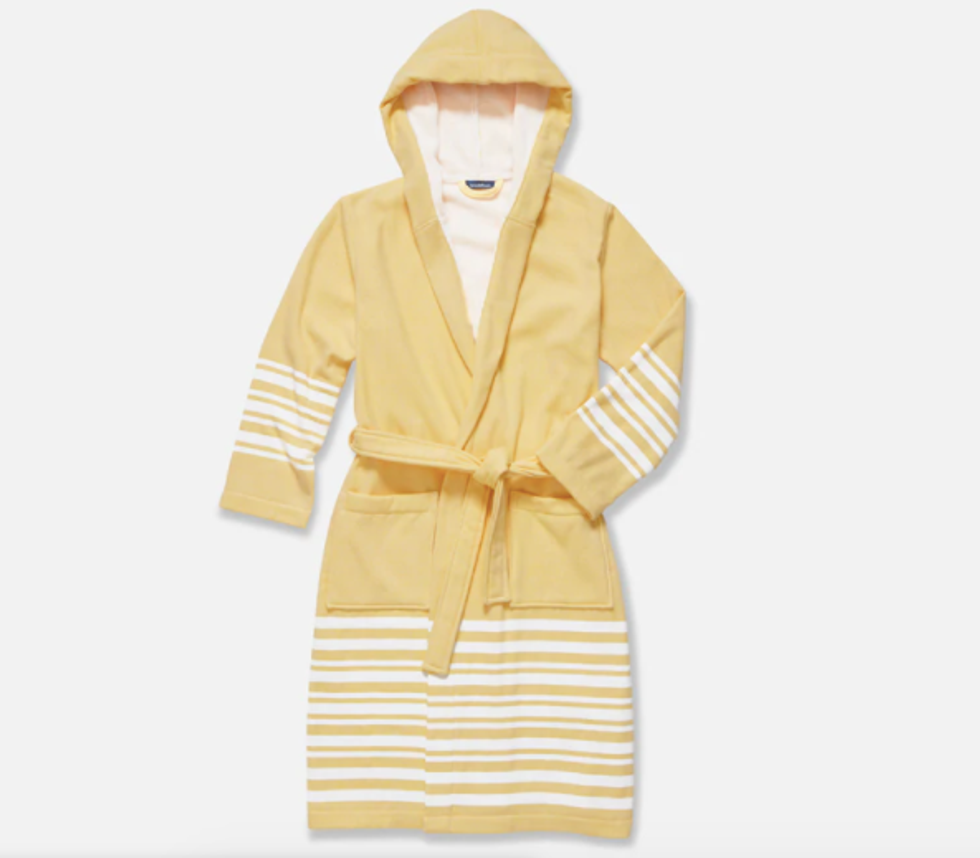 Bright and sunny, this Brooklinen robe is made of 85% Turkish cotton with an ultra-absorbent terry lining for quick drying after your bath or shower. The single-ply yarn used ensures this is as soft as it is beautiful, and the Z-twist weave leaves it ultra-strong and resistant to snags or tears.