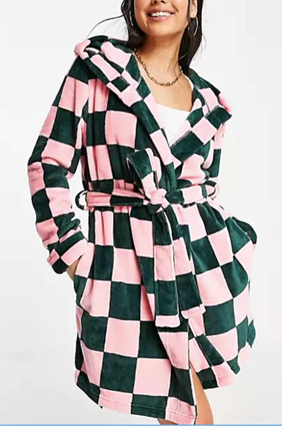 Super Soft Checkerboard Fleece Robe in Pink & Green